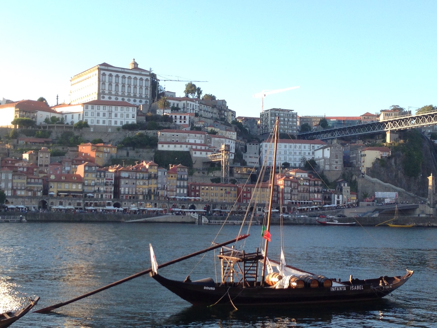Am Abend sitzen wir am Rio Douro bei einem Bierchen in einer Bar bei Sonnenuntergang.