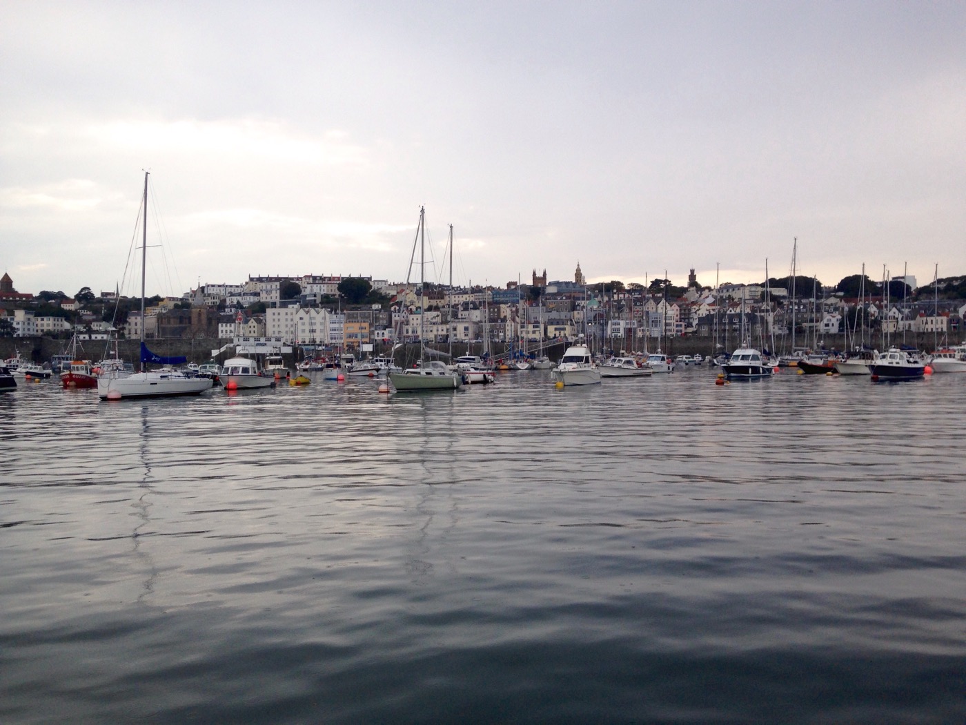 Wegen der Einkaufsaktion am Morgen (siehe Jersey) schaffen wir es gerade so zur Fähre, weil wir uns mit den Rädern auch erst mal noch verfahren. Um 10 Uhr legt die Fähre ab, eine Stunde später sind wir bereits in der Hauptstadt Saint Peter Port auf Guernsey.