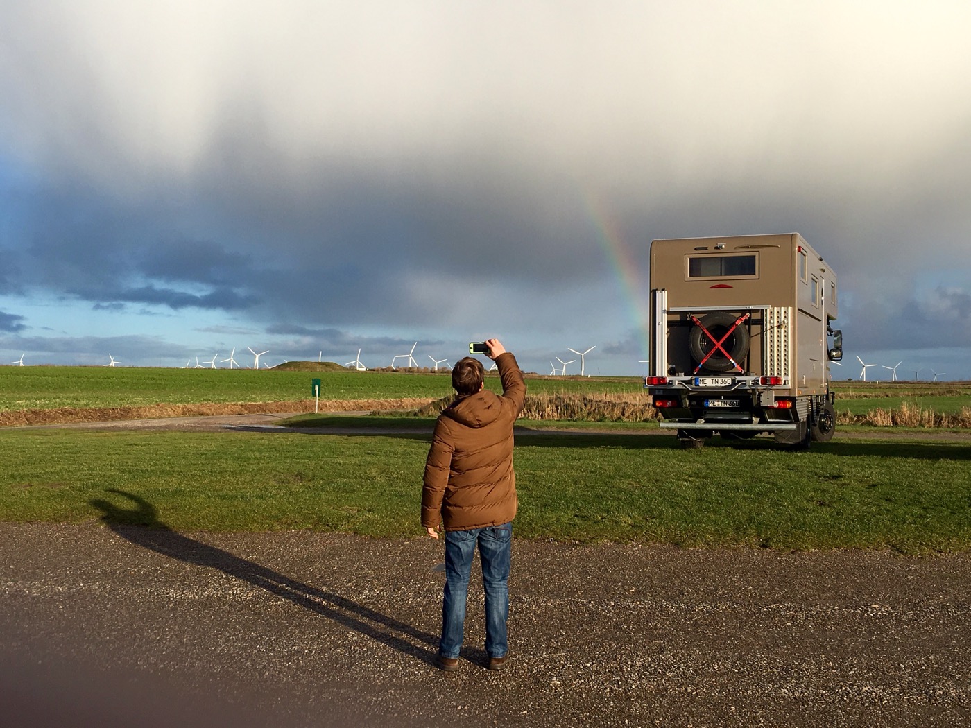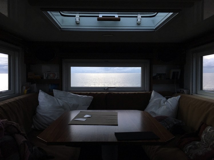 Ein Übernachtungsplatz in Dänemark, der sich nicht gerade auf einem Campingplatz befindet, ist schwierig. Wohnmobile und Zelte sind nicht gern außerhalb der Campingplätze gesehen. Als wir einen tollen Platz direkt mit Blick auf das Meer finden, hält uns ein Verbotsschild ab: Camping nicht erlaubt. Wir googeln schnell, was uns ein Verstoß kosten würde: 5 – 500€, je nachdem, wo man steht. ’n bisschen viel, denken wir und trauen uns nicht. Schließlich landen wir unverhofft auf einer schmalen Straße, die sozusagen „verdammt“ ist, weil linksseitig der Straße ein hoher Damm verläuft, der einen freien Blick aufs Meer nicht zulässt. Letztlich kommen wir vor einem geschlossenen Tor zum Stehen: Verdammt! Es ist dunkel und ein Verbotsschild sehen wir nicht. Getreu dem deutschen Gedanken: Solange es nicht verboten ist, ist es erlaubt, bleiben wir stehen. Es wird eine schöne ruhige Nacht.