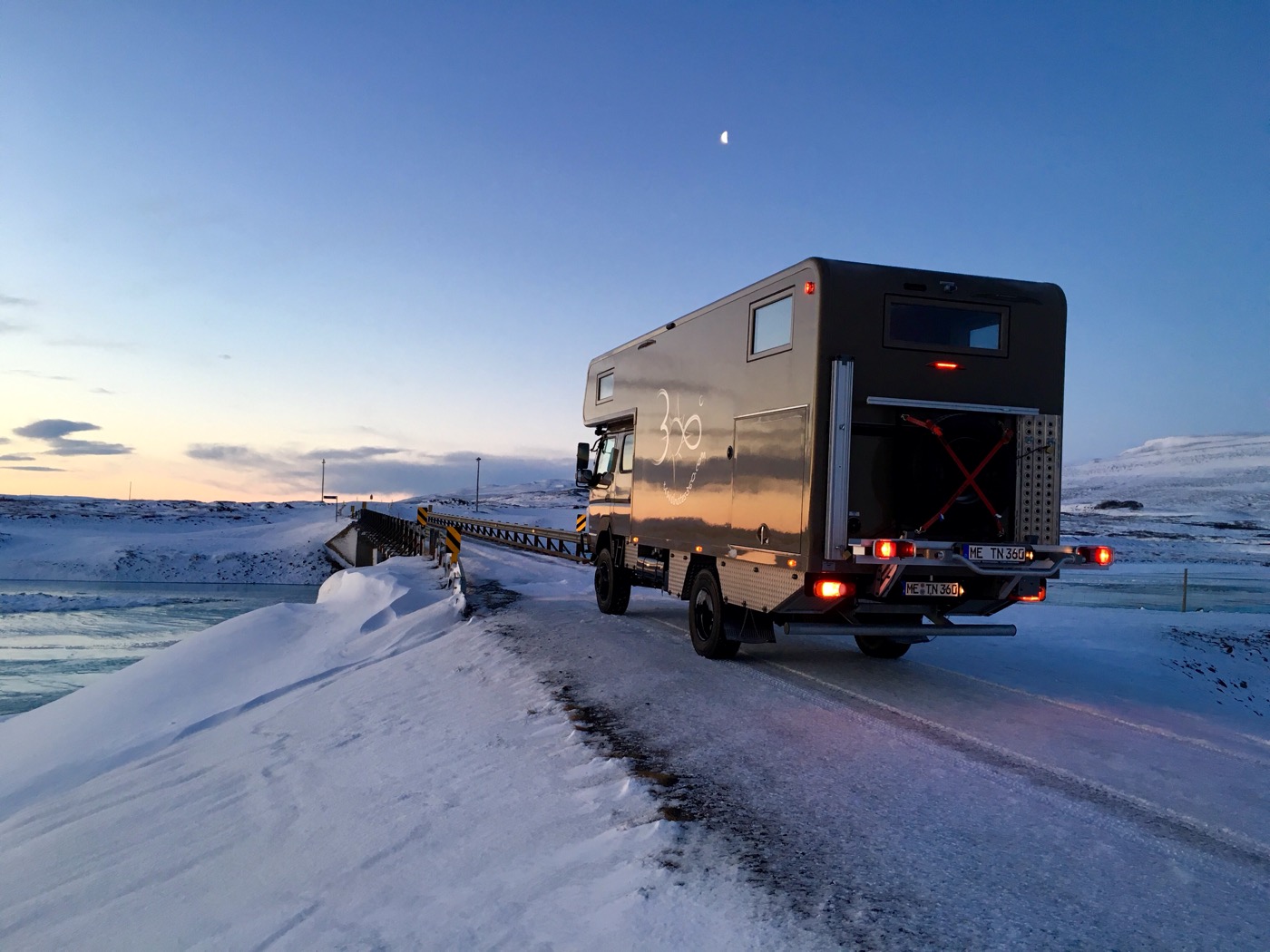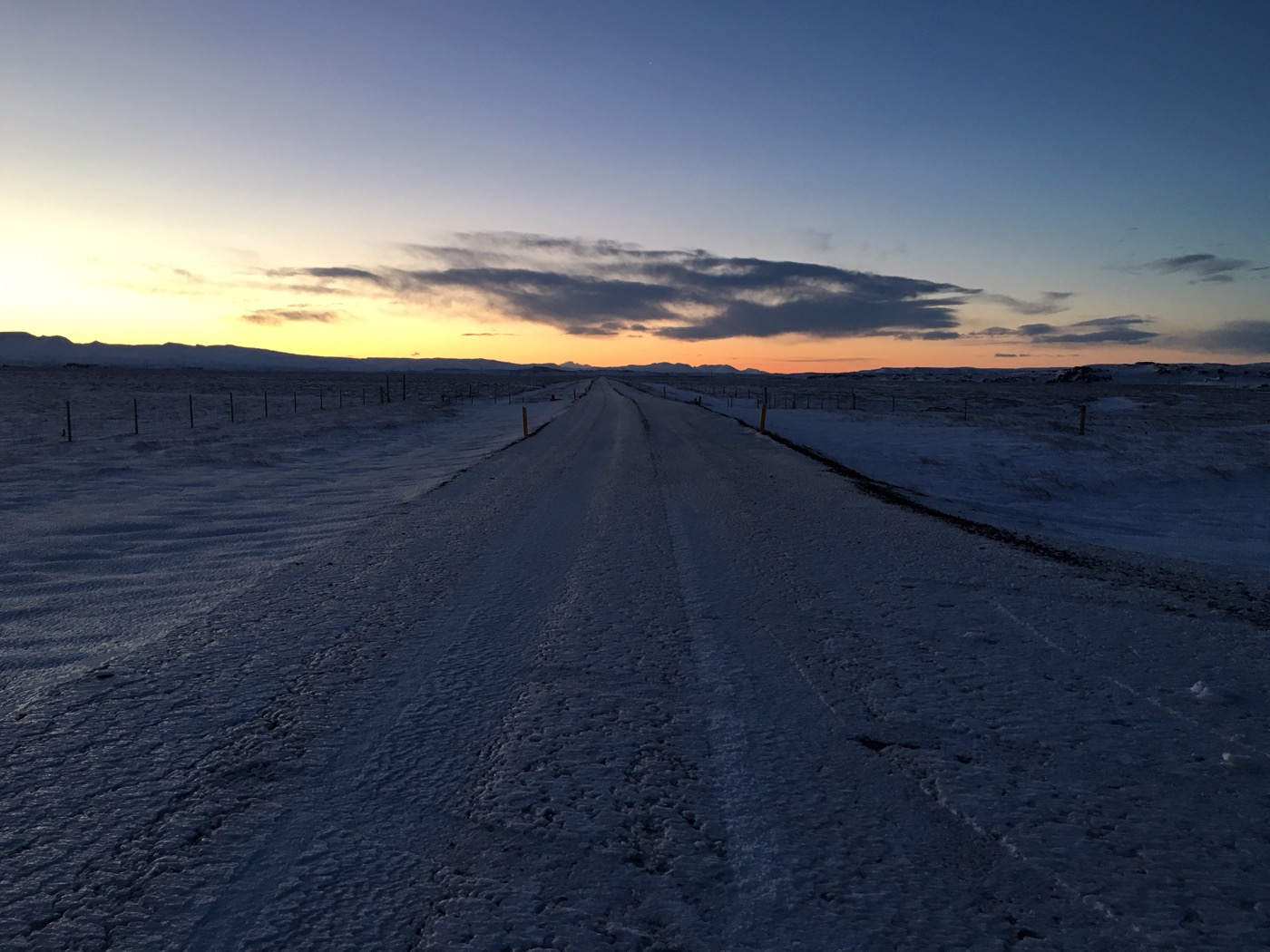 In Egilsstaðir wollen wir aber auch nicht bleiben, wir wollen weiter in den Norden. Wir fahren also die Ringstraße entlang, biegen weiter nördlich auf die Schotterpiste 917 ab. Kurz vor unserem Tagesziel Vopnafjöður kommen wir nicht über den Pass: gesperrt. „Impassable“ steht auf dem Schild. Aber ist „impassable“ gleich „impossible“? Es gibt auf Island verschiedene Sperrungen: „impassable“, „no passage“ und „closed“. „Impassable“ bedeutet, dass die Straße nicht (mehr) durchgehend befahrbar ist, sie wird auch nicht mehr geräumt. Im Winter verschwindet eine solche Straße einfach im Schnee oder eine gigantische Schneewehe versperrt den Weg. Ansonsten können da auch mal Brocken auf der Straße liegen oder die Straße ist unterspült oder hat tiefe Querrinnen. Es ist zwar nicht verboten, eine solche Straße zu befahren, aber das Schild warnt eindringlich davor, denn wenn man Hilfe benötigt, kann das so richtig teuer werden. „No passage“ bedeutet, dass das Hineinfahren strengstens verboten ist. Da es bereits dunkel ist (im Dezember bereits so gegen 15 Uhr), bleiben wir vor dem Schild stehen, und zwar etwas neben der Fahrbahn auf Schotter, wo aufgehäufte Sandhügel liegen. Als Alex rausgeht, um unter die Schneedecke zu gucken, ob wir gut stehen, sieht er eine dicke Eisschicht. Das ist das nächste Problem auf Island: man weiss nie, was sich unter der Schneedecke befindet. Schnell wieder ein paar Meter zurück auf den Schotter. Wir stehen also über Nacht möglichst nahe an der Straße.