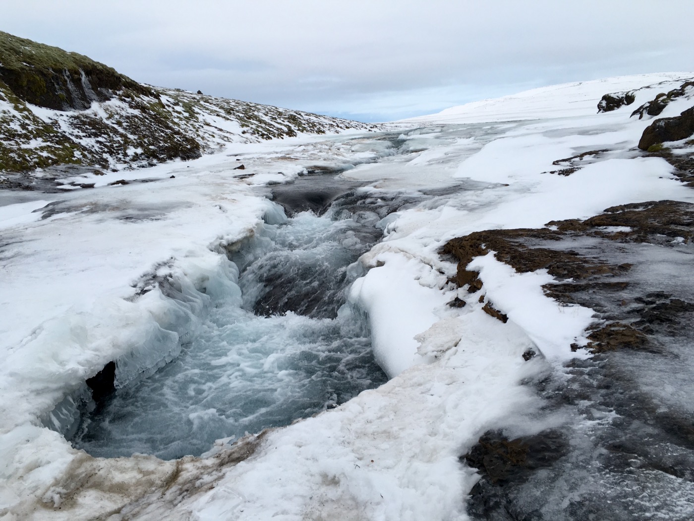 Fazit dieser Tour: bitte nicht nachmachen. Von Magnea haben wir später erfahren, dass es im Winter die Möglichkeit gibt, den Canyon entlang bis zum Wasserfall zu laufen, wenn der Fluss genügend zugefroren ist. Bestimmt ein tolles Erlebnis!