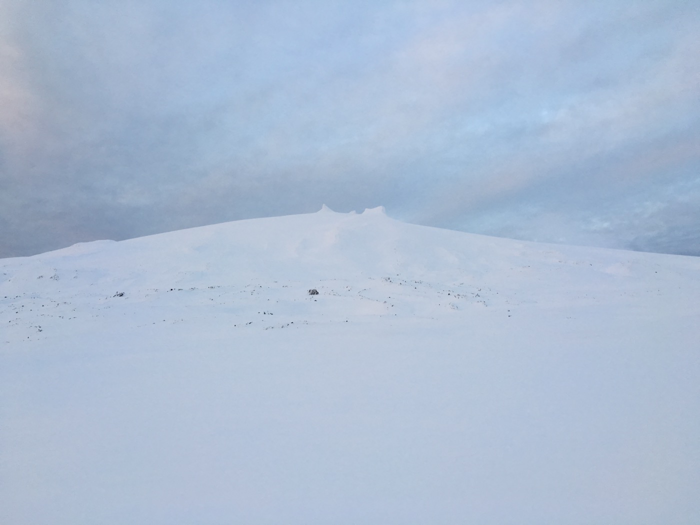 Jules Verne hat in seinem Buch den Snæfellsjökull (isländisch für „Schneeberggletscher“) als Eingang zur „Reise zum Mittelpunkt der Erde“ gewählt. Zu Recht! Schneeweiß thront er auf der Snæfellsness, der Halbinsel im Nordwesten Islands. Ursprünglich hieß er einfach Snæfell. Da man ihn aber nicht mehr von zwei anderen Bergen unterscheiden konnte, die denselben Namen trugen, hing man ganz einfach „jökull“ (das isländische Wort für Gletscher) hinten dran. Einige Zeit lang galt der Snæfellsjökull als höchster Berg Islands, weil man sich 1753 ein bisschen vermessen hat. Damals maß der Berg 2154 m und weil die Erstbesteiger bei der enormen Höhe Angst hatten, dass die Luft zu dünn würde, nahmen sie zur Sicherheit sogar Essigfläschchen mit. 1804 lag man bei einer erneuten Vermessung 10 m niedriger als der Berg tatsächlich ist. Erst 1910 legte man die Höhe auf 1446 m fest und so hoch ist er bis heute. Unser erster Versuch, bis zum Gletscher zu kommen, scheiterte aufgrund des schlechten Wetters: es war derart windig, dass wir uns kaum auf den Beinen halten konnten und so mussten wir bei Songhellir, den „Singenden Höhlen“ (ca. 2 km vom Parkplatz entfernt), bereits umkehren. Der Wind peitschte uns Hagel ins Gesicht, dass es wehtat. Am nächsten Morgen nun sieht das ganze anders aus: Die Sonne lacht, der Wind hat nachgelasssen, also starten wir zum Berg. Im Sommer kann man bis zu einem Parkplatz fast am Gletscherrand fahren. Jetzt im Winter geht das nicht: „impassable“ ist die Straße. Der Straße bis zum besagten Parkplatz müssen wir uns teilweise suchen, weil eine dicke Schneeschicht den Weg und sämtliche Markierungen unter sich begraben hat. Ski wären hier besser gewesen, weil wir tief im Schnee einsinken, was das Laufen erschwert. Bis zum Gletscher schaffen wir es leider nicht, aber der Blick auf den Berg und dessen Umgebung ist wundervoll: