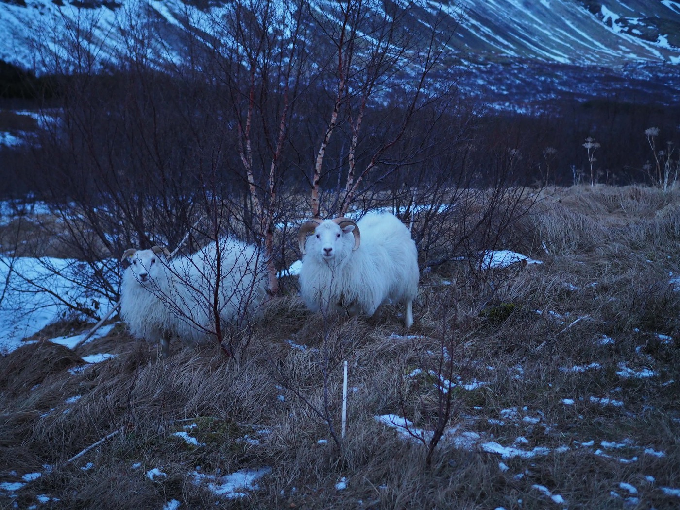 Der restliche Weg ist ein Spaziergang, wobei ich abrupt aufschreie: da stehen plötzlich zwei Schafe rum, die mir erst auffallen als wir fast neben ihnen stehen: